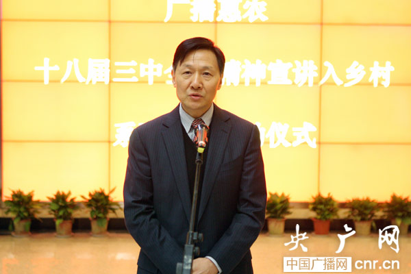 三中全會精神宣講入鄉(xiāng)村活動,是中央人民廣播電臺實施“廣播惠農(nóng)工程”的又一重要舉措,也是國家電臺聯(lián)合中國農(nóng)業(yè)銀行等涉農(nóng)企業(yè)為農(nóng)民進(jìn)行公益服務(wù)、履行社會責(zé)任的又一有益嘗試。2012年12月起,中央人民廣播電臺利用創(chuàng)辦國家對農(nóng)廣播頻率中國鄉(xiāng)村之聲的契機(jī),實施國家電臺“廣播惠農(nóng)工程”,讓廣播成為農(nóng)村公共文化體系建設(shè)的有效手段之一,服務(wù)農(nóng)民、惠及農(nóng)民。目前在廣大農(nóng)村,黨和國家的政策入戶存在“三少”現(xiàn)象,即針對農(nóng)民的政策解讀少,對農(nóng)民有具體指導(dǎo)的少,能給農(nóng)民講明白的少。因此,利用廣播媒體的優(yōu)勢,邀請熟悉三農(nóng)政策甚至是參與制定政策的專家,及時、準(zhǔn)確、專門地針對基層干部和農(nóng)民群眾宣講三中全會精神,既有效,又切實,可以填補三中全會精神在農(nóng)村宣傳的真空。