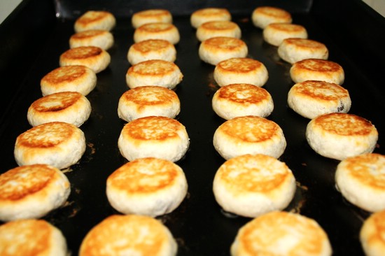 光緒末年,瀏陽制作硬殼餅發(fā)展到42家,從業(yè)人員達100多人。因其互相競爭,質量提高很快。瀏陽茴餅它采用糖皮包酥、缸隔爐烤的獨特制作方法,以面粉、茶油、白糖、飴糖作主料,金桔花、小茵香、熟芝麻、桂子油、碎冰糖等為輔料,經過和皮子、和蕊子、擦油酥、扯臍包酥、開皮灌蕊、成型烘烤等十多道工序精制而成。成品外表美觀,面圓微凸,火色金黃光亮,表面起酥,里皮燥脆,內餡豐滿,松泡爽口,油甜不膩。具有小茴、桂子、芝麻等天然芳香。