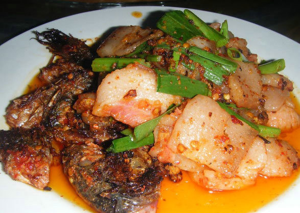 酸扎魚是印江特色美食之一,把魚洗凈拌上糯米粉和紅辣椒放到壇子里腌10天半個月。要吃的時候,就把腌成的魚從壇子里取出,放上姜、蔥,用茶油或菜油煎,絕對是一道酸辣醇香的風(fēng)味菜。