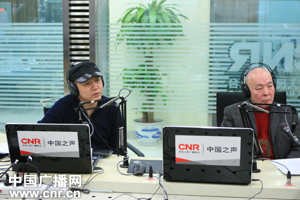 京韻大鼓表演藝術(shù)家種玉杰先生(左)和著名相聲演員李增瑞老師做客《中國大舞臺(tái)》,圖為節(jié)目現(xiàn)場直播中 攝影/陳江南