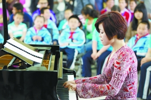 從海頓到舒伯特,再到《水草舞》、《歡樂的牧童》,陳薩精心為孩子們選擇了多首相當動聽的中外鋼琴小品,并以講演結(jié)合的方式,為孩子們生動講述了這些動聽曲子的背景和故事,讓孩子們感受到了室內(nèi)樂輕松幽默又或是靜謐甜美的另一個側(cè)面,從音樂中聽到了從未聽到過的“童話故事”。演奏間歇,她還鼓勵孩子們走上前來,試著觸摸鋼琴。其中一名患有自閉癥的孩子聽了陳薩彈奏的一首《天空之城》后竟然能模仿得有模有樣,雖然只是簡單的旋律,但也讓陳薩非常激動!拔也恢酪淮我魳窌芙o這些孩子帶來什么,也許并不能完全打開他們的世界,但卻可以尋找一種和他們交朋友的方式,讓他們知道世界并不是那么的孤單!标愃_說。