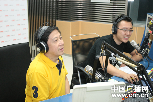 中國廣播藝術(shù)團著名歌唱家魏金棟(左)與主持人楊昶(右)(中廣網(wǎng)記者陳江南_攝)