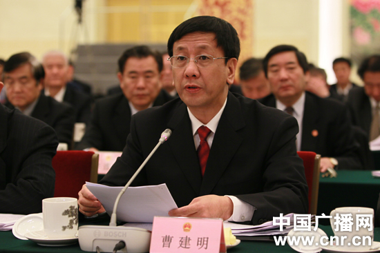 最高人民檢察院檢察長曹建明同志發(fā)言(中廣網(wǎng)記者徐陽 攝)