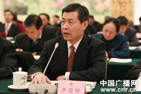 全國(guó)人大常委會(huì)法制工作委員會(huì)主任李適時(shí)發(fā)言(中廣網(wǎng)記者 徐陽(yáng) 攝)