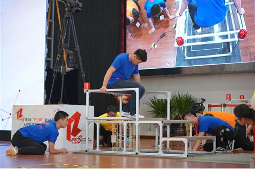 而對于承辦方,如此全新的嘗試,新的問題也是不斷涌現(xiàn),沒有現(xiàn)成的加載裝置做加載測試就是其中最大的一項(xiàng)大挑戰(zhàn),怎么辦?自主研制!“我們團(tuán)隊(duì)從2017年5月就開始著手進(jìn)行了這項(xiàng)工作的準(zhǔn)備,一幫老師帶著一幫學(xué)生,在全校啟動了跨系跨學(xué)科的大合作攻關(guān),第一臺出爐后,我們后續(xù)又進(jìn)行了多次的工藝突破、改良,小到用材的選擇、每一項(xiàng)指標(biāo)的精度與靈敏度調(diào)適等。”加載裝置研制工作負(fù)責(zé)人沈家棟老師談起了裝置制作的過程,現(xiàn)下,大賽的成功舉辦終于可以讓他們一直緊繃的弦放松了,他有感而發(fā):“同濟(jì)浙院雖然是一所新興的獨(dú)立學(xué)院,雖然此前未曾申辦過省級學(xué)科競賽,但是,學(xué)校很拼,教師也很努力,這次大賽的成功舉辦就是一個最好的見證和考驗(yàn)。我想,從這次成功舉辦之后,在承辦學(xué)科競賽而且是A類學(xué)科競賽的高校目錄里,我們就不再是‘0’了,二是‘1’了,有起步點(diǎn)了,相信以后會有越來越多這樣的‘1’!保ㄍㄓ崋T:曹嘉燕/文 陶博勇/圖)