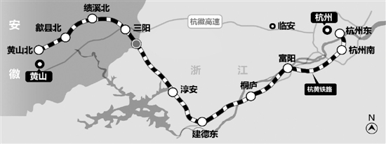 杭黃高鐵全線共設有10個站點,分別是杭州東、杭州南、富陽、桐廬、建德東、淳安、三陽、績溪北、歙縣北、黃山北。除了杭州東、杭州南站為既有車站外,其余的8個車站都屬于新建車站。