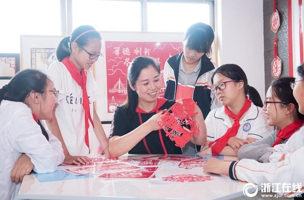 近日,湖州千金鎮(zhèn)紀(jì)委組織開展“童心向黨·剪紙喜迎十九大”活動(dòng),F(xiàn)場(chǎng),孩子們?cè)谇Ы疰?zhèn)金剪刀傳承人潘曉霞的指導(dǎo)下,充分發(fā)揮想像力進(jìn)行創(chuàng)作,一雙雙小手剪出了廉潔、公正、愛國、守法等剪紙作品,以實(shí)際行動(dòng)喜迎十九大;顒(dòng)還展示了潘曉霞的部分廉潔剪紙作品,大力倡導(dǎo)家長(zhǎng)們從自身做起,端正行為,樹好榜樣,讓孩子們?cè)诹疂嵓绎L(fēng)中健康成長(zhǎng)。 (浙江在線拍友 沈勇強(qiáng) 攝)
