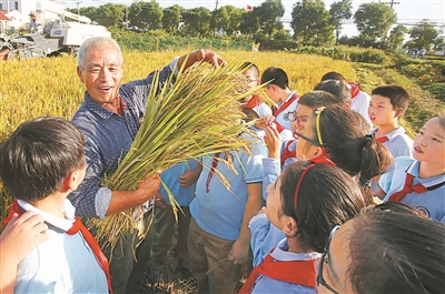 昨天下午,寧波市高塘小學(xué)聯(lián)合江北區(qū)農(nóng)技總站在洪塘街道鞍山村舉行“第37個世界糧食日”愛糧節(jié)糧教學(xué)活動。40名小學(xué)生在田間觀看晚稻收割,聽農(nóng)技員講解水稻生長知識,并動手體驗使用水分測試儀測試稻谷水分;顒幼寣W(xué)生們體會到了糧食的來之不易。(記者 徐文杰 王笑)