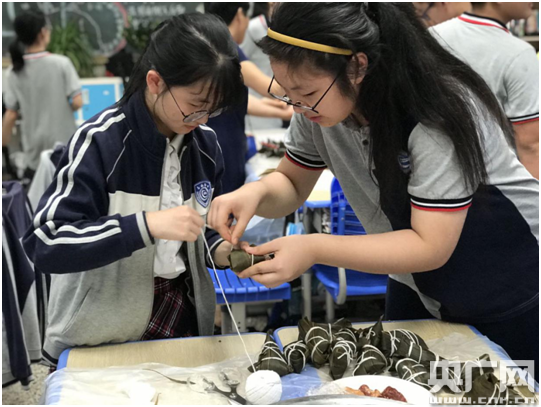 在各班教室里,同學(xué)們或觀看圖片,傾聽家長(zhǎng)代表介紹端午的來歷及風(fēng)俗習(xí)慣,或三五成組,就端午節(jié)的習(xí)俗及意義展開游戲、知識(shí)搶答、詩朗誦等。本次活動(dòng)的重要環(huán)節(jié)是包粽子,各班老師、家長(zhǎng)代表現(xiàn)場(chǎng)指導(dǎo)學(xué)生包粽子,師生、家長(zhǎng)之間通力合作,完成了佳節(jié)美食的制作。